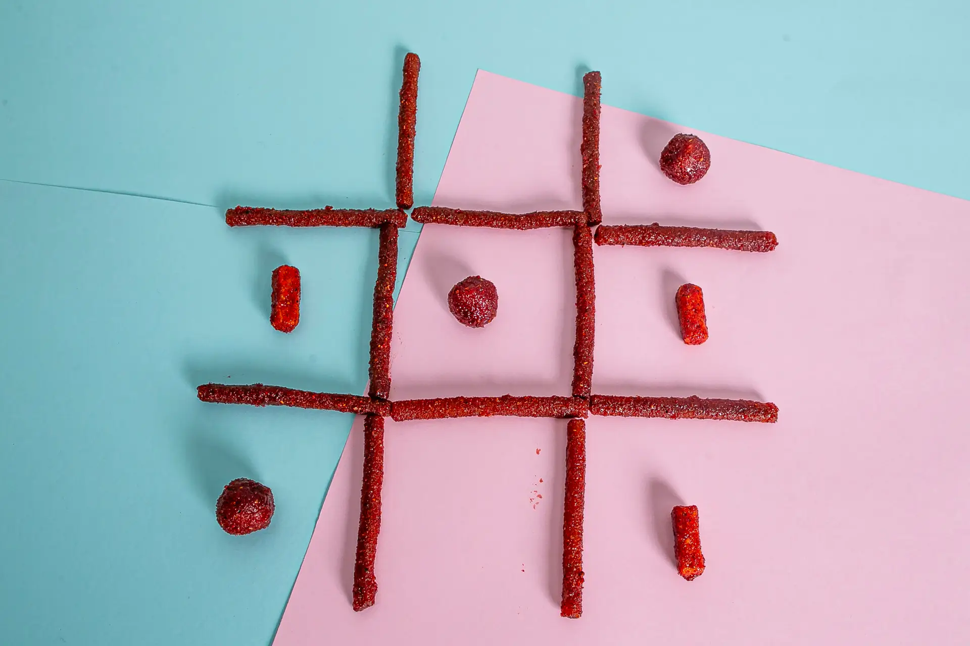 La aventura se desarrolla en actos. Acto I: El Desafío. La capa exterior de chile en polvo te da la bienvenida con un golpe picosito y saladito que despierta tu paladar. Acto II: El Quiebre. Muerdes y sientes el satisfactorio “crunch” de la fina capa de caramelo. Acto III: La Recompensa. Llegas al corazón de goma suave, liberando una explosión de sabor a fresa dulce y jugosa que calma el picor y te deja deseando volver a empezar.